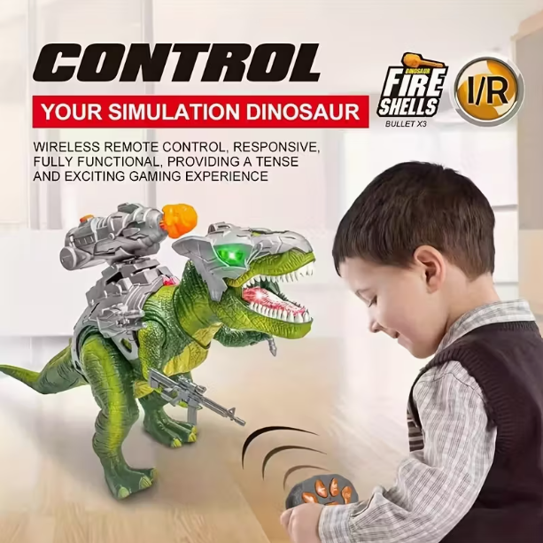 Gracias a su avanzada frecuencia de 2.4 GHz, podrás controlarlo fácilmente hasta a 30 metros de distancia, sin interferencias ni retrasos. Mueve tu dinosaurio hacia adelante, atrás o gíralo con precisión, e incluso activa su modo de demostración automática para verlo en acción sin tocar un solo botón.